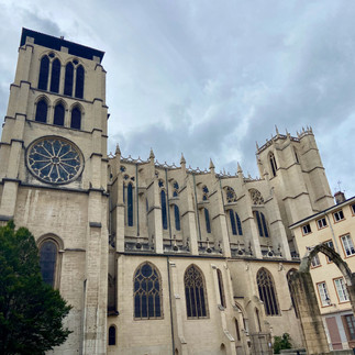 After the walking tour I first checked out the beautifully complex astronomical clock (old and beautiful but sadly not functioning) in the Saint-Jean-Baptiste Cathedral then headed up the Fourvière hill to the Basilica of Notre-Dame de Fourvière to both admire the basilica as well as the views. I could see the Alps in spite of slightly cloudy weather, and even glimpsed Mount Blanc, which I sat at the base on in March when I was in Chamonix! The top of the hill is also home to an old Roman forum, which was fun to wander around in. Then so. many. stairs. to come back down!