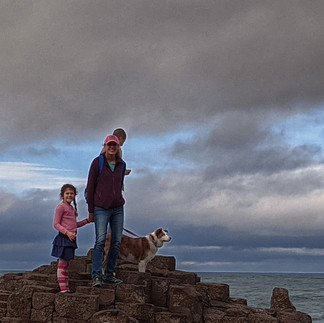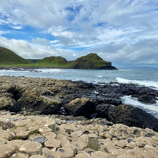 Several fun things about this trip. First, it’s a UNESCO World Heritage Site (so, our second thus far in Ireland, I believe). Second, we had a guest with us—Teresa Fox! Third, we could see Scotland across the water. Fourth, the Giant’s Causeway is in Northern Ireland so you cross the border (such as it is). Starting with that, there’s very little marking this border except for a rusty old sign (no joke). Once there, google maps and the road signs switch back from kilometers to miles, which caused some brief confusion. Also, the taxis were in the style of old British taxis. Other than that, it felt very much like the Republic of Ireland. We did drive past Belfast (which I’ve learned is pronounced with the emphasis on the second syllable) but did not stop to check it out this time.