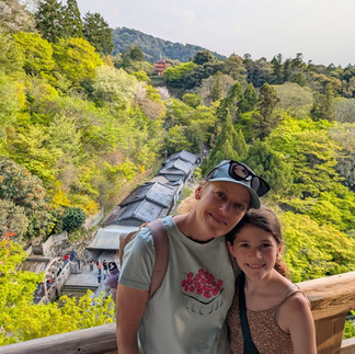 The last bit up the hill to meet up with the others at Kiyomizu-dera Temple was almost comically crowded. There we explored the temple, rang the gong, the kids lifted items to show their strength, we took in the gorgeous views, and David, Sally, and I drank the sacred water together. David and Sally had been here with his mom last time, so it was special to revisit it together.