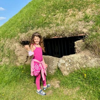 On Saturday we took a Go car (David is doing awesome at driving here!) to Brú na Bóinne, where we visited the UNESCO world heritage site (1 of 3 in Ireland) New Grange on the River Boyne. The New Grange (and Knowth) burial mounds here were built in 3200 BC by the neolithic farmers to honor their dead. At over 5000 years old, these mounds are older than Stonehenge. Much like almost everywhere we've visited in Ireland, the visitor's center was incredibly impressive with immersive experiences and thoughtful exhibits. The actual burial mounds were amazing! Apparently it took like 200 years to build these - which, if you do the math, is about 7 generations given the lifespan 5000 years ago. They had almost no tools, no wheels, and yet created these monstrous (the largest is 20 ft high inside) structures. A true feat of architecture. David and I were remarking how these people had probably pretty difficult lives (cold, rainy, minimal good shelter, disease, etc.) and yet spent all their time making a nice cozy home for the dead (reminds me of the Egyptians and many others)...why was that so important? Why not funnel some of that energy into building nicer residences to actually LIVE in? It's so interesting.