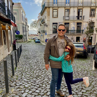 Norman-Banerjee family in Lisbon, Portugal. Last year we met them at roughly the same time in Barcelona…I’m liking this trend. We stayed at an Airbnb in the very cool Alfama neighborhood of the older part of the city, just below the São Jorge castle. It’s known for its crazy windy narrow streets and stunning city views. Hidden courtyards with wine bars pop up as you make your way through the maze.