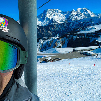 On Friday, after yet another beautiful sunrise/moonset admired from our balcony, we enjoyed a last morning together on the slopes in Courchevel and revisited our first lunch spot at Col de Luze, where we watched paragliders take off and cute dogs run around (what a great life!). I spent the afternoon solo in Courchevel then enjoyed a little home-style late afternoon après ski on our balcony with David and Sally.