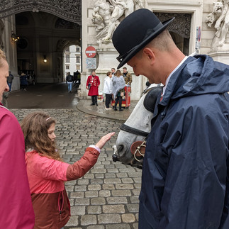 From there we started strong by taking in a show at the Spanish riding school. This is essentially like a pilgrimage to Mecca for me, so I was fully enthusiastic. David and Sally also enjoyed it, though I expect it was a bit boring for them at times (you can only watch so many a passage and piafe). The tickets had to be printed at home (no using your phone here!) and there were strangely specific directions about how to fold them just so. I followed the instructions with precision, only to be mightily made fun of by David. Thus, a real highlight for me was that when the ticket collector scanned our tickets he heartily complimented me on how perfectly they were folded and David heard him. I was redeemed! The school itself it quite ornate with enormous chandeliers that are elevated before the horses enter. We had standing room tickets (as did most folks, only a handful of incredibly overpriced seats were available). I ended up feeling more conflicted about the actual experience that I had expected, though in retrospect I am not sure why this surprised me. Many equine events invoke a similar feeling for me…I cannot help but get swept up into the history/glory/spectacle of it, but I have mixed feelings about the discipline as a whole. Don’t get me wrong, these horses are extremely well cared for and live a darn good life, and work pretty hard to boot (we all have to work for a living, don’t we?). Yet then why are most of them definitively overweight? How do we justify making them work in double bits with such extreme collection of their head/neck performing lovely-to-watch but unnecessary movements? Probably a conversation for another day…All in all I was quite enamored (and what talented riders!), and then we walked across the street and were able to see into their stable as well. While I’m guessing there’s no turnout (it’s smack in the middle of the city), it was otherwise, not surprisingly, gorgeous. And here they are into the solarium thing as well (see photo below).
